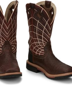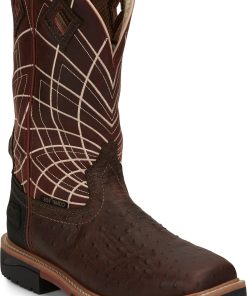 Justin Boots Men’s Footwear Derrickman 12″ Waterproof Comp Toe | Walnut Ostrich Print (brown)