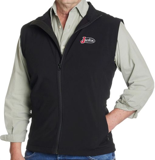 The Laminated Vest in British Khaki is a water- and wind-resisting essential with a classic neutral look and the iconic Justin logo.