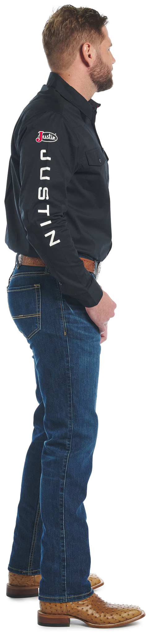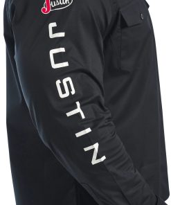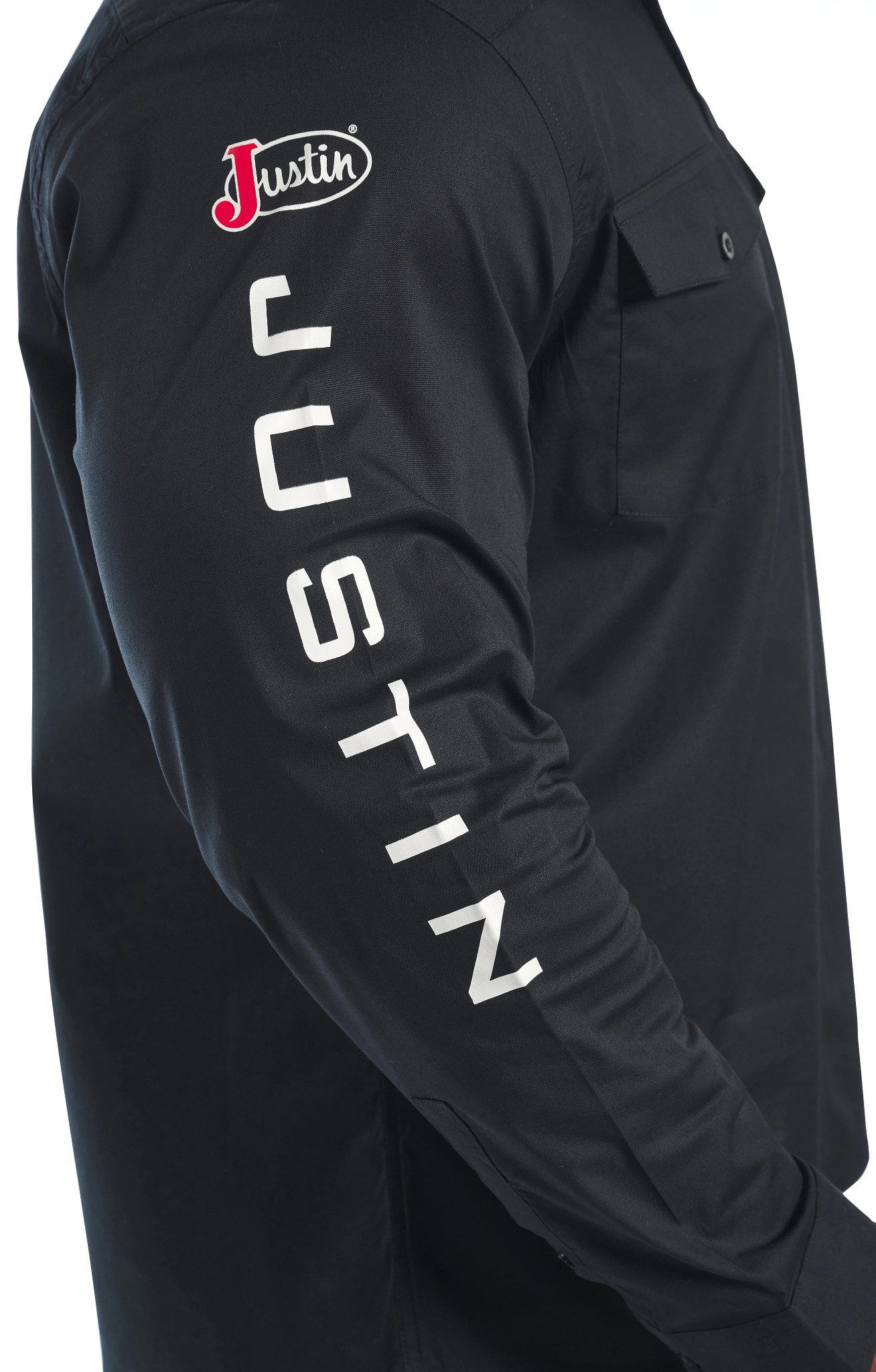 Make a statement with our stylish collared shirt adorned with the Justin logo, perfect for any occasion.