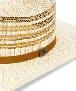 Classic straw cowboy hat with a timeless design. This hat features a ventilated structure, making it lightweight and comfortable for the hottest days, while its brown band adds a touch of style. Perfect for everyday wear or outdoor special events, this Justin brand hat seamlessly combines functionality and fashion for lovers of the western style.