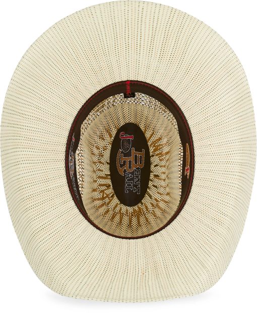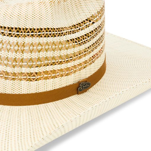 Classic straw cowboy hat with a timeless design. This hat features a ventilated structure, making it lightweight and comfortable for the hottest days, while its brown band adds a touch of style. Perfect for everyday wear or outdoor special events, this Justin brand hat seamlessly combines functionality and fashion for lovers of the western style.