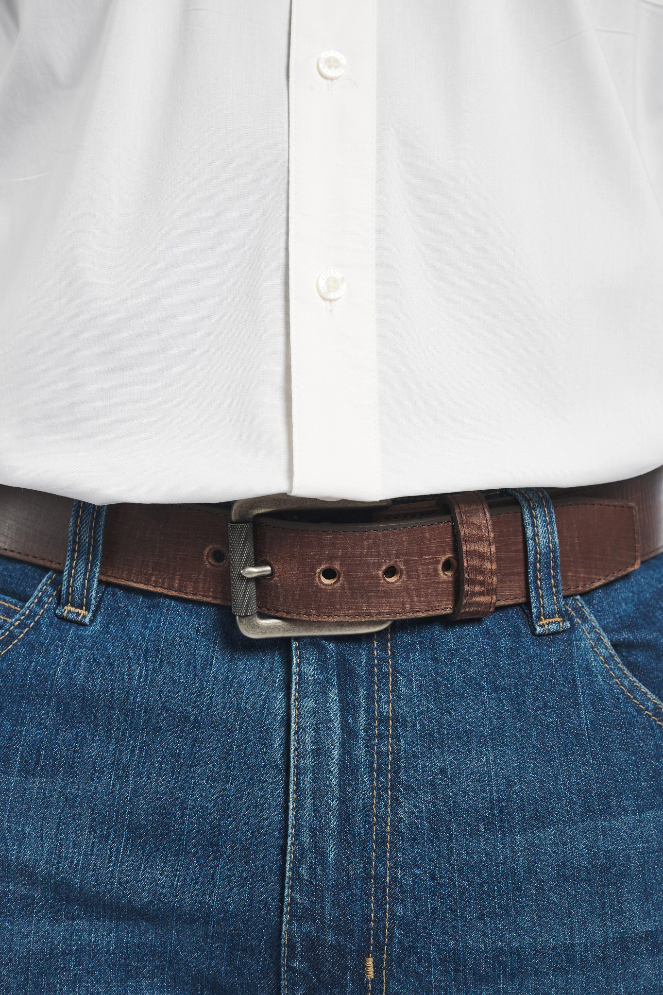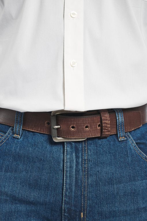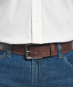 The matte buckle adds to the calm, laid-back feel. The leather measures 1 5/8 inches wide.