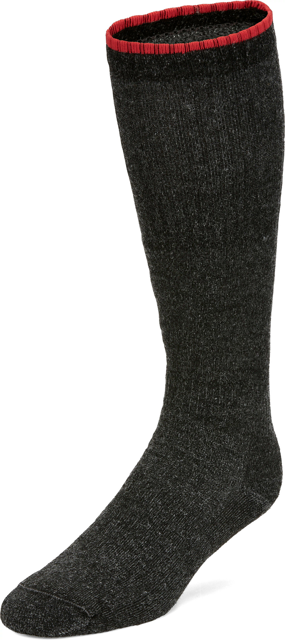 Our merino wool blend tall boot socks are a daily essential designed with the right height for the coverage you need. In grey with red trim. Includes one pair. Medium (9-11) fits men’s shoe sizes 4-9. Large (10-13) fits men’s shoe sizes 9-13. Extra Large (13-16) fits men’s shoe sizes 12-16. This style is proudly Made in the USA with global parts.