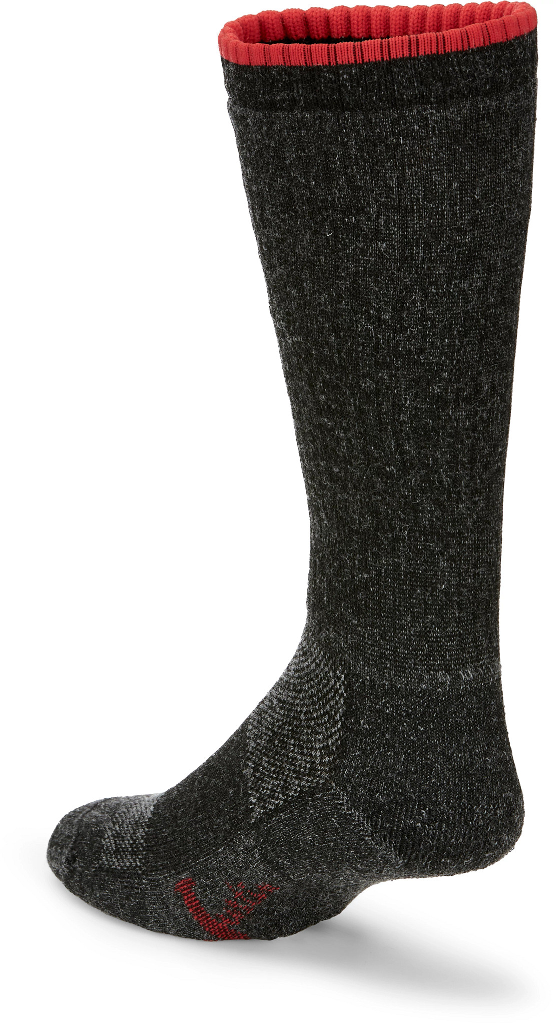 Our merino wool blend crew socks are a daily essential, whether you’re at work or unwinding. In grey with red trim. Includes one pair. Medium (9-11) fits men’s shoe sizes 4-9. Large (10-13) fits men’s shoe sizes 9-13. Extra Large (13-16) fits men’s shoe sizes 12-16. This style is proudly Made in the USA with global parts.