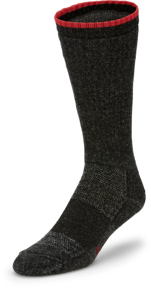 Our merino wool blend crew socks are a daily essential, whether you’re at work or unwinding. In grey with red trim. Includes one pair. Medium (9-11) fits men’s shoe sizes 4-9. Large (10-13) fits men’s shoe sizes 9-13. Extra Large (13-16) fits men’s shoe sizes 12-16. This style is proudly Made in the USA with global parts.