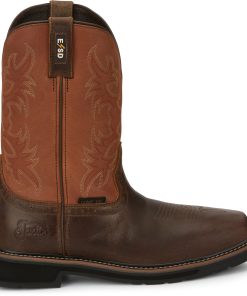 The composite toe provides an armor-like shield and meets safety standards without weighing your foot down. This boot features the J-Flex Flexible Comfort System® ESD insole that adds cushion and support and the Stampede™ dual density rubber outsole with resistance to abrasion, chips, slipping, and marking which allows you to work comfortably and meets ASTM F2413 safety footwear standards.