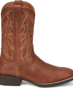 This 11” wide square toe western boot brings you a larger platform and bold new design featuring a top-notch stitch pattern on hazel brown cowhide.With upgraded leather and a breathable lining, a removable orthotic comfort insole and an oil- and-slip resisting outsole, the Canter gives you premium quality and performance at an excellent value.