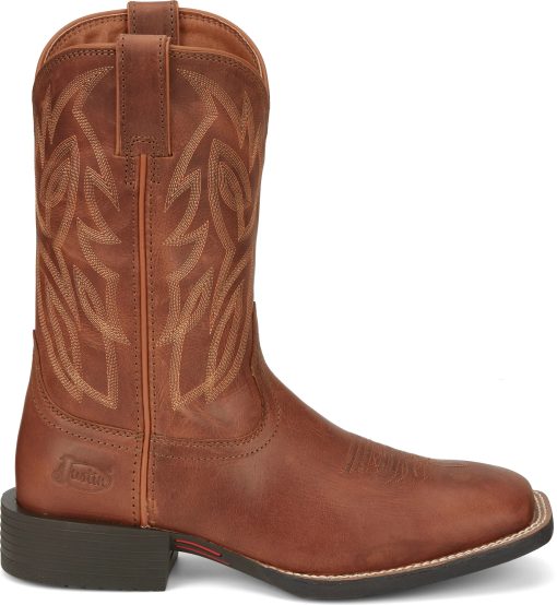 This 11” wide square toe western boot brings you a larger platform and bold new design featuring a top-notch stitch pattern on hazel brown cowhide.With upgraded leather and a breathable lining, a removable orthotic comfort insole and an oil- and-slip resisting outsole, the Canter gives you premium quality and performance at an excellent value.