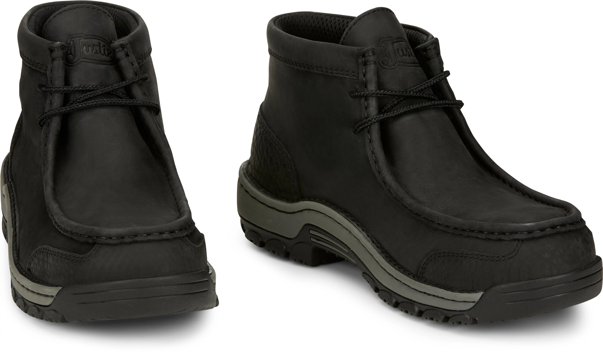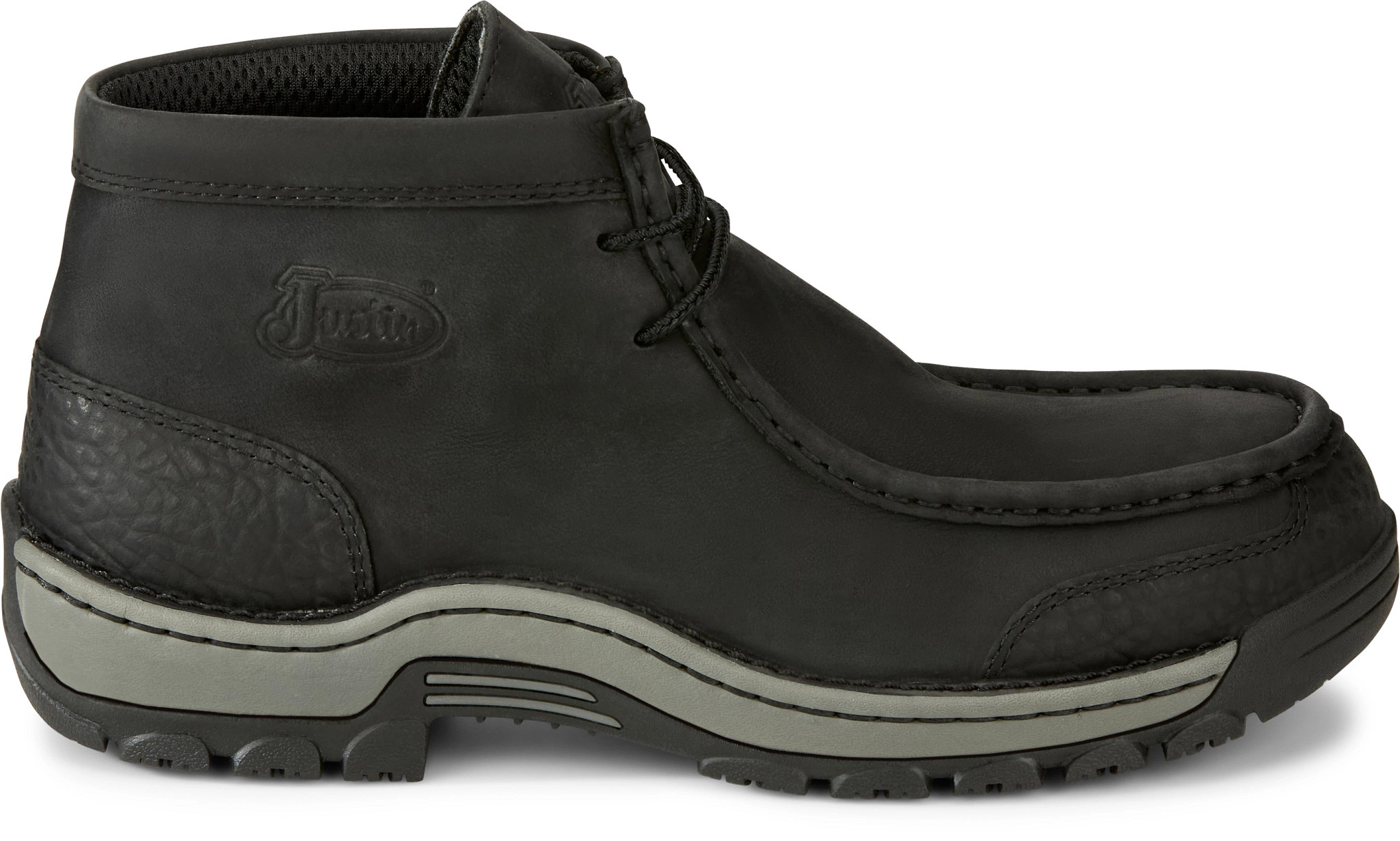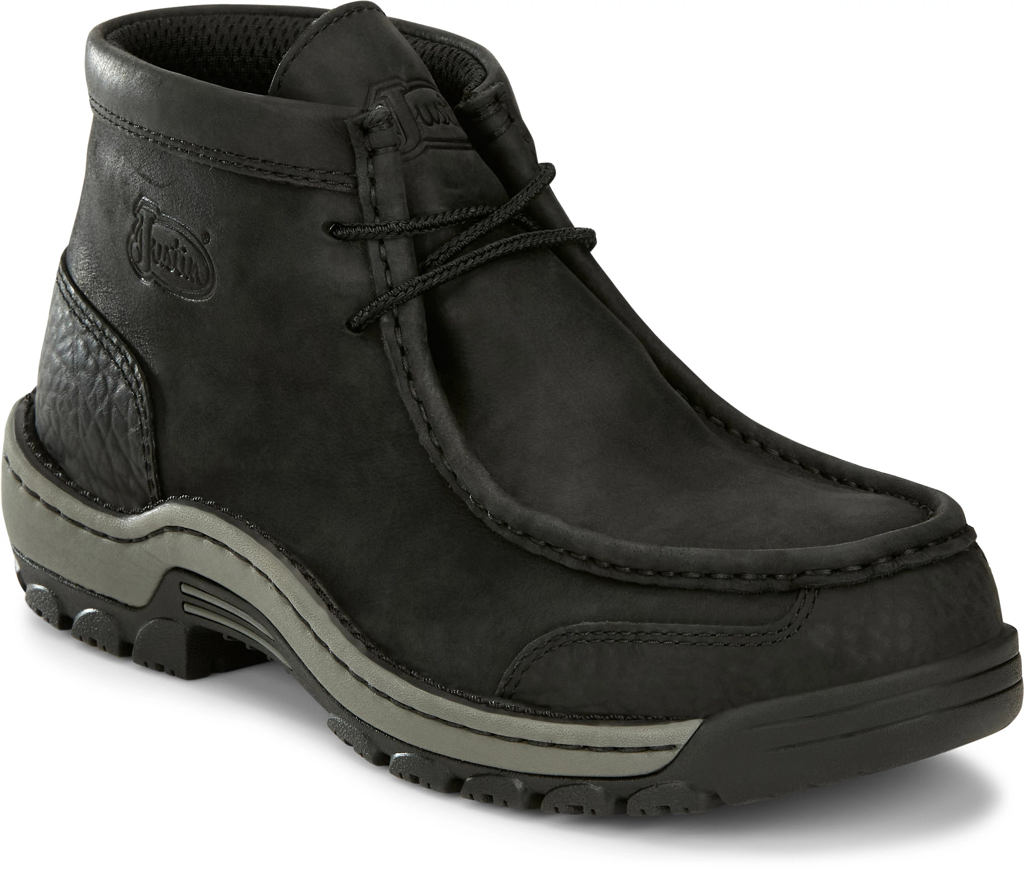 The Crafton 4” Alloy Mocc Toe boot from our Stampede Light Duty collection is crafted from durable black cowhide. Featuring an alloy safety toe, slip- and oil-resisting rubber outsoles and removable Ortholite® inserts for cushioned comfort, these boots will bring you from the jobsite or office to after-hours downtime with ease. These boots meet ASTM 2413 safety footwear standards.