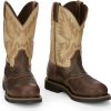 Its leather upper is embellished by a vibrant stitch pattern and is paired with a polished square toe foot. This boot has a rubber and EVA combination outsole with resistance to abrasion, chips, slipping, and marking which allows you to comfortably work on any surface.