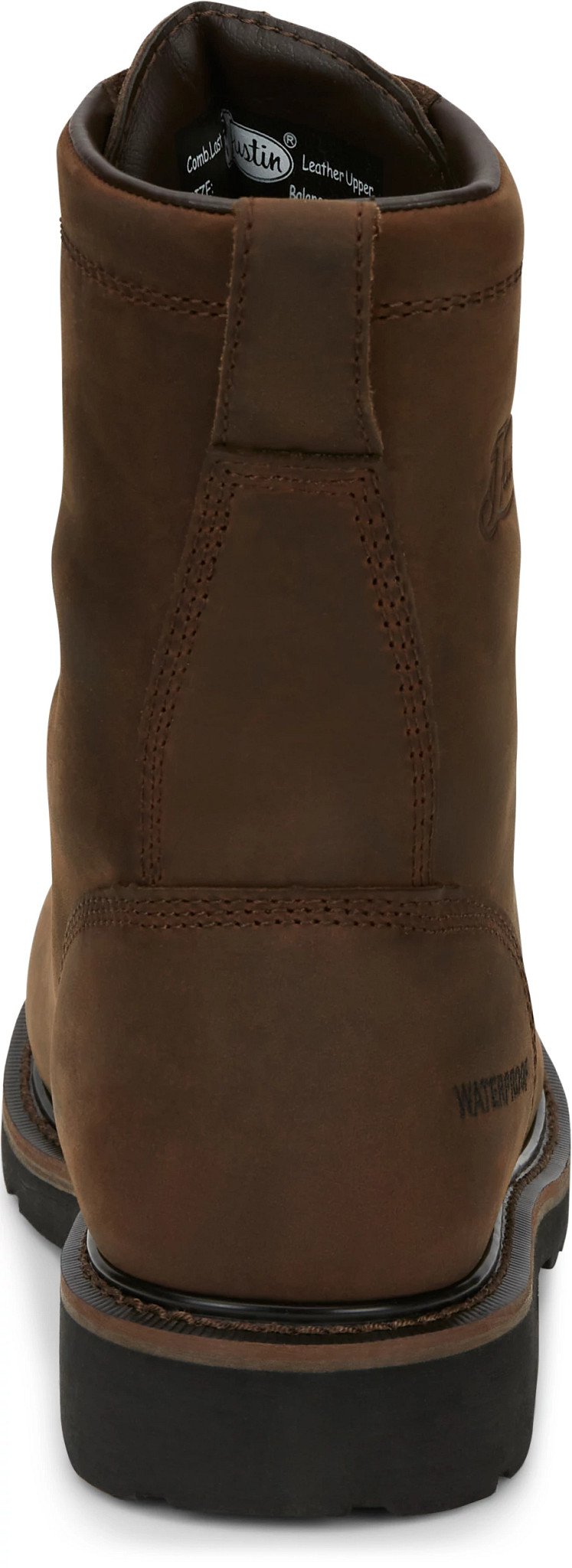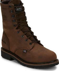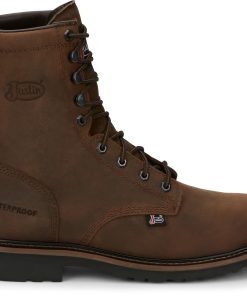 Ready for the job, the Justin Stampede™ Drywall Steel Toe is an 8″ tall Men’s work boot with a distressed beige waterproof leather exterior.