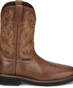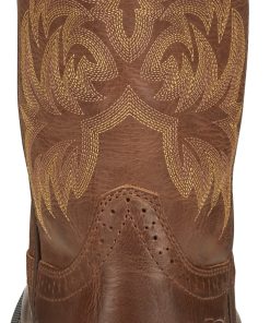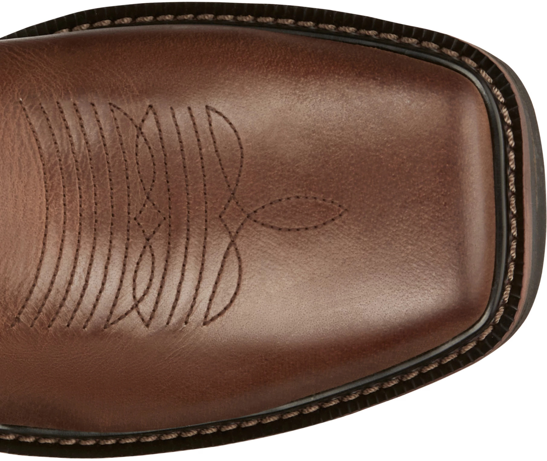 Its rugged golden brown leather exterior is garnished by a light yellow stitch pattern along the upper giving this boot a lived-in feel. The square composition toe vamp provides protection without weighing the foot down. This boot also features the J-Flex Flexible Comfort System® insole that cushions and supports the foot and the Stampede™ dual density rubber outsole with resistance to abrasion, chips, slipping, and marking which allows you to comfortably work on any surface and meets ASTM F2413-11, I75, C75 EH safety footwear standards.