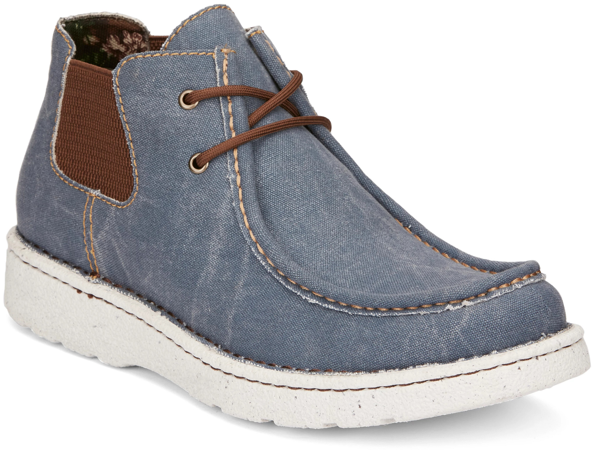 Stretch goring panels on the side add to the easygoing, comfortable feel on this blue casual. The Justin Casuals collection features stylish, comfortable and lightweight footwear, crafted with the Opanka technique which returns energy to your foot giving a trampoline effect with every step.