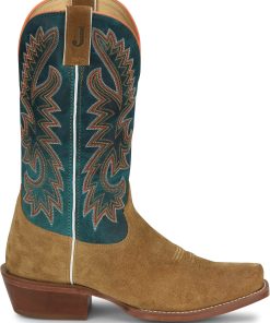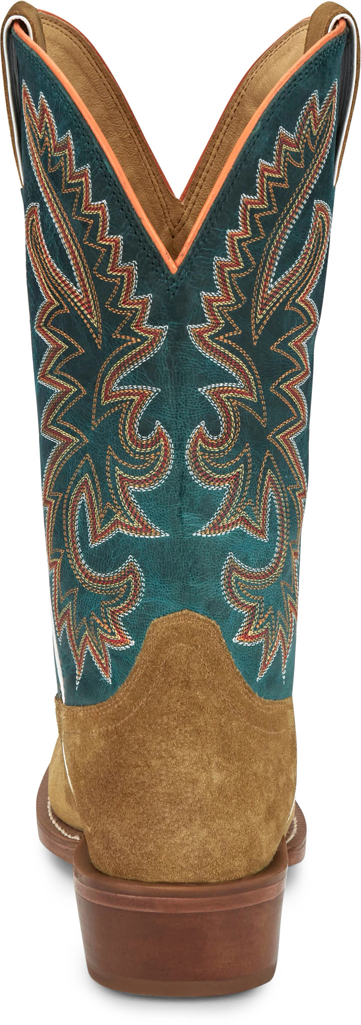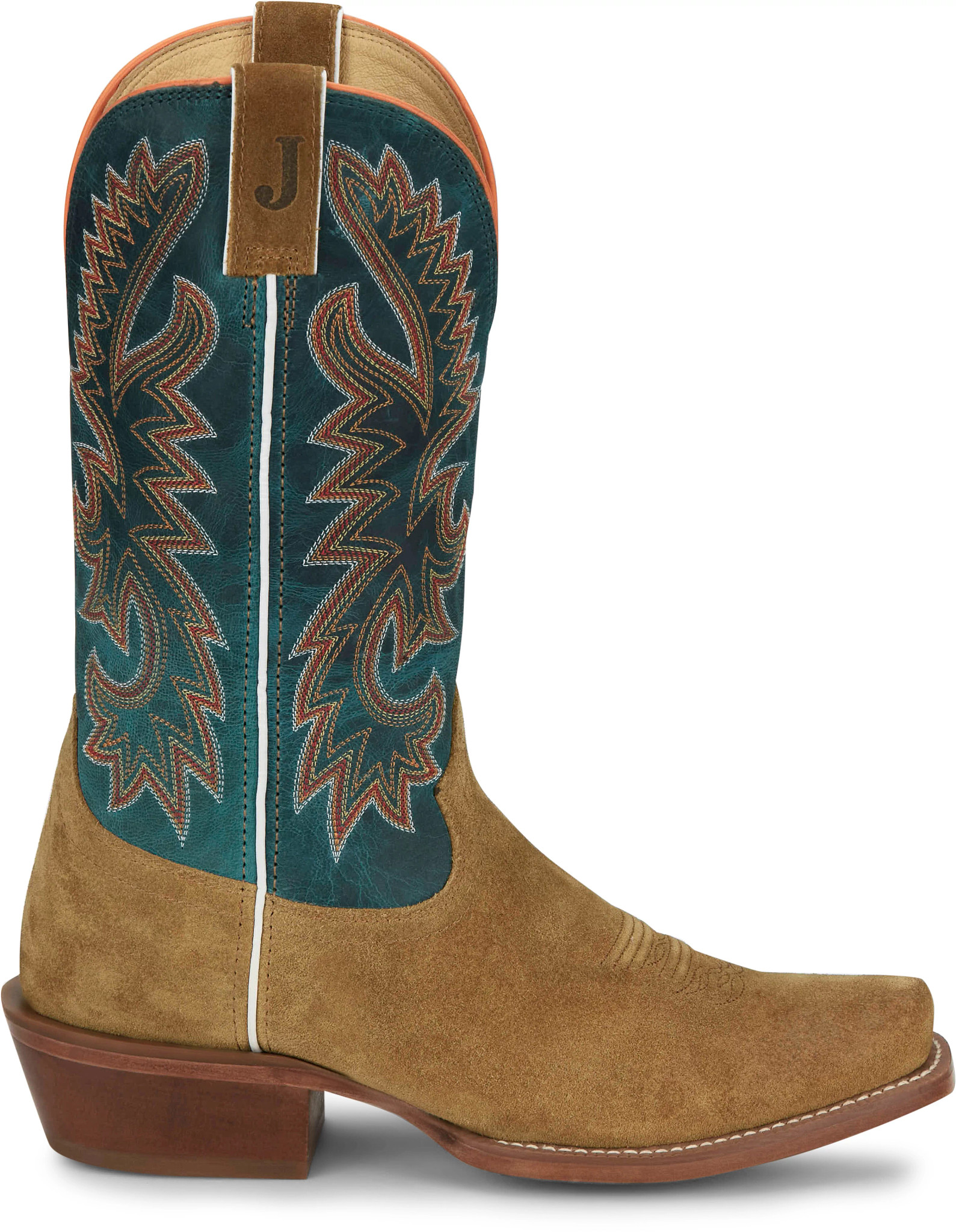 The Jimmy 13″ men’s western boot pairs a suede foot with a goat leather upper. It features a fine leather outsole in Western style, complemented by a heel with a spur ridge and convenient pull tabs. Perfect for an authentic and lasting cowboy look.