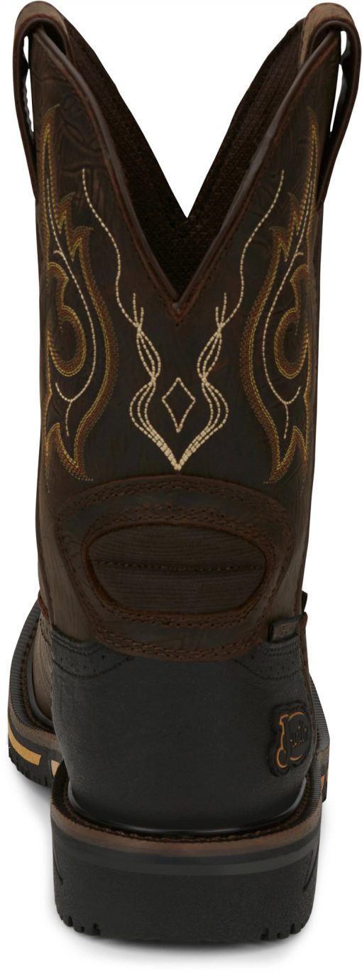 The leather exterior is waterproof and accented by a simple stitch pattern along the upper. This boot features layers of comfort with a J-Flex Flexible Comfort System® insole, the Justin Stabilization Technology®, Ortholite® Comfort Foam insole, and a Dri-Lex® cover. The composite toe provides security and comfort and meets safety standards without weighing you down. Its multi-density rubber and EVA combination outsole offers lightweight durability and meets the standards for electrical hazard footwear so you are guaranteed protection against open circuits of up to 18,000 volts. This boot also provides an Achilles Relief System® that eliminates weak spots in foot comfort by using stretchable material, high-density foam, and moisture-wicking anti-microbial lining to provide flexibility, support and breathability.