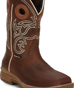 This 11” waterproof nano comp toe boot is built with new high-tech features designed to keep you comfortable long after the workday is done. The NiTread features the new N2Gen™ technology in the insole which includes nitrogen encapsulated impact zones in the midsole that absorb shock, then redistribute the energy to reduce foot fatigue throughout the day while helping to extend the life of your boots. It also includes a Removable Ortholite® Insert, an oil-and slip-resisting rubber outsole to keep you steady on your feet all day, and our nano-composite toe – our strongest, most lightweight safety toe that’s designed with added toe room. This boot is electrical hazard rated and features a non-metallic shank. Safety features meet ASTM F2413 safety footwear standards.