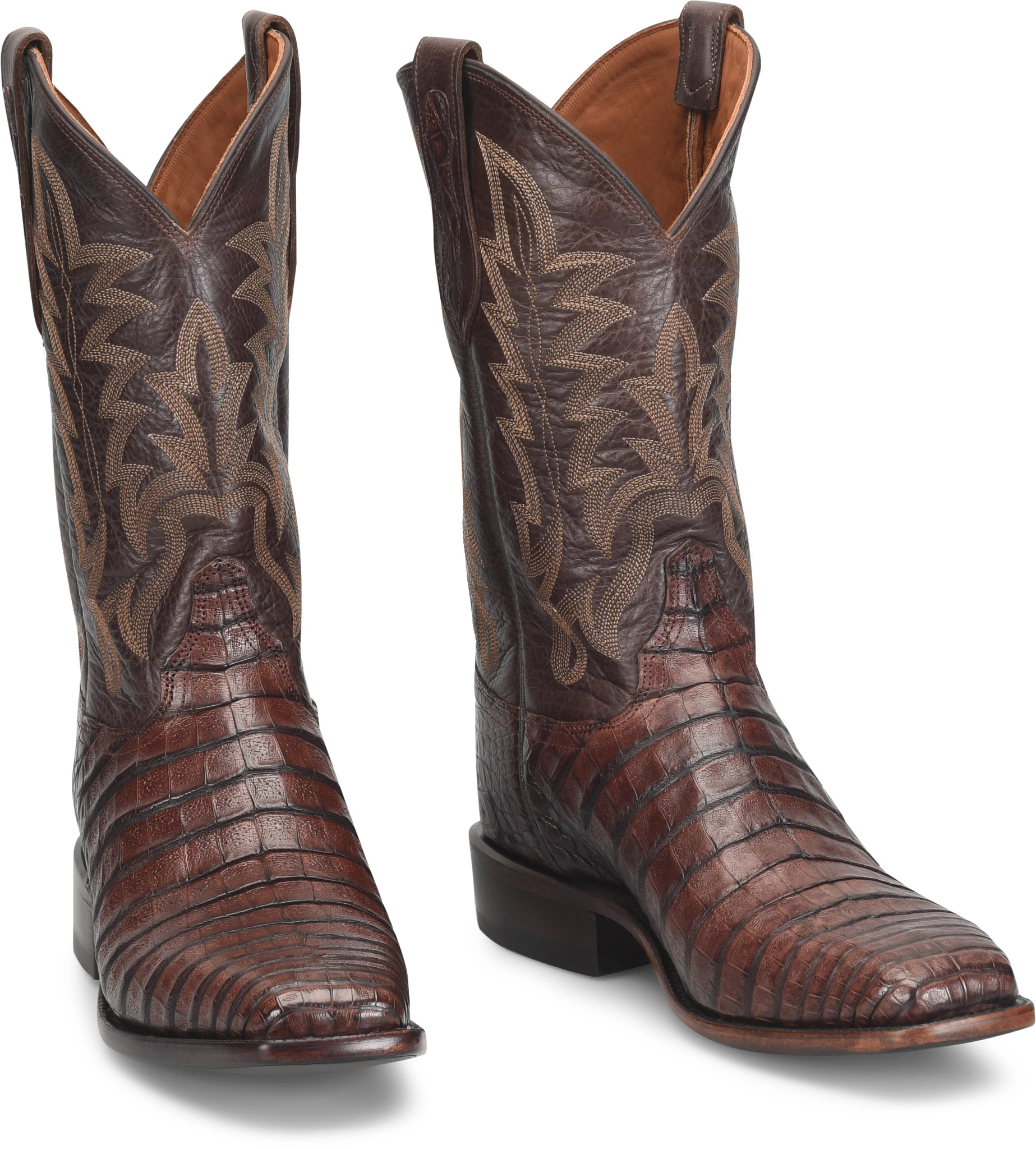 Experience the ultimate in Western luxury with this Caiman boot from our George Strait Collection. Featuring a bold Caiman leather vamp and a full-grain leather shaft adorned with intricate stitching, this boot offers a striking blend of elegance and durability. The 12″ shaft and square toe design provide both comfort and a timeless Western look, perfect for any occasion. Embrace the spirit of true craftsmanship inspired by the King of Country.