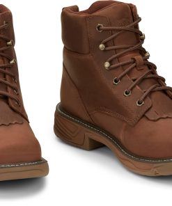 Waterproof cowhide helps keep feet dry in wet conditions, and the oil- and slip-resisting rubber outsole offers key traction where you need it most. As part of the Stampede Rush collection, the Lacer features an athletic-inspired multi-layer outsole that’s designed for natural flexibility. Inside, the Ortholite® insole provides comfort underfoot. This boot is Electrical Hazard Rated and features a non-metallic shank.