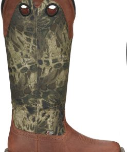 Featuring 17 inches of snake-resisting protection, these comfortable and durable boots will defend against most North American snakes including ratt¬lesnakes, copperheads and coral snakes. They’re crafted with a Prym1® Woodlands Camo textile upper and a cowhide leather vamp for rugged durability. An oil- and slip-resisting outsole provides traction on rugged terrain while the removable Ortholite® insole adds comfort to every step. These boots are Electrical Hazard Rated to meet ASTM F2982-11 EH standards.
