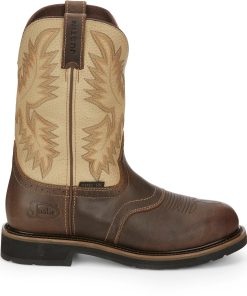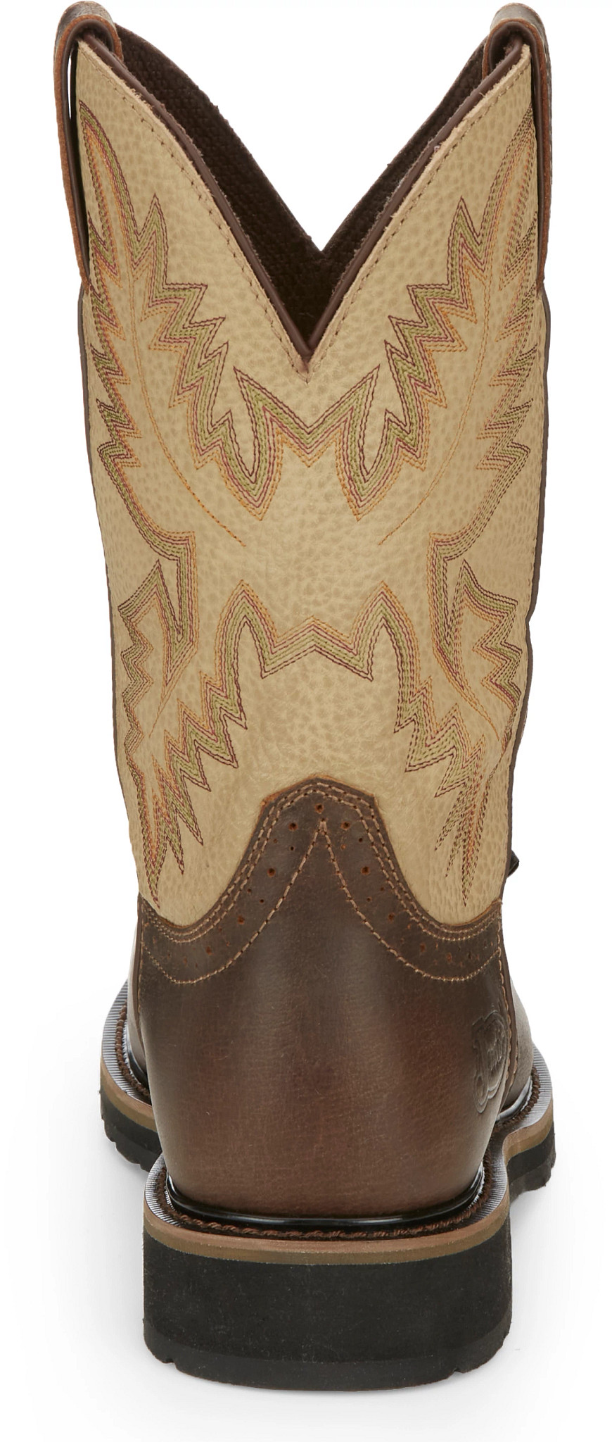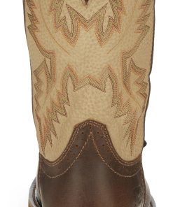 Its bone white leather upper is accented by a pastel yellow and green-toned stitch pattern and the golden brown perforated saddle vamp and is slightly distressed giving this boot a vintage feel. This boot features a steel toe that provides protection and impact absorption when working in at-risk areas while the J-Flex Flexible Comfort System® insole adds cushion and support. This boot has the Stampede™ dual density rubber outsole with resistance to abrasion, chips, slipping, and marking which allows you to comfortably work on any surface and meets ASTM F2413-11, I75, C75 EH safety footwear standards.
