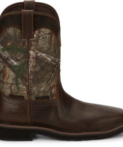 The RealTree® Mini X-Tra camo upper is paired with a polished brown leather vamp and collar. It features a waterproof exterior for added protection when up against the outdoor elements and a composition square toe for armor-like protection of your metatarsals that meets safety standards without weighing you down. The J-Flex Flexible Comfort System® insole cushions and supports your foot guaranteeing lasting comfort and meets ASTM F2413-11, I75, C75 EH safety footwear standards.
