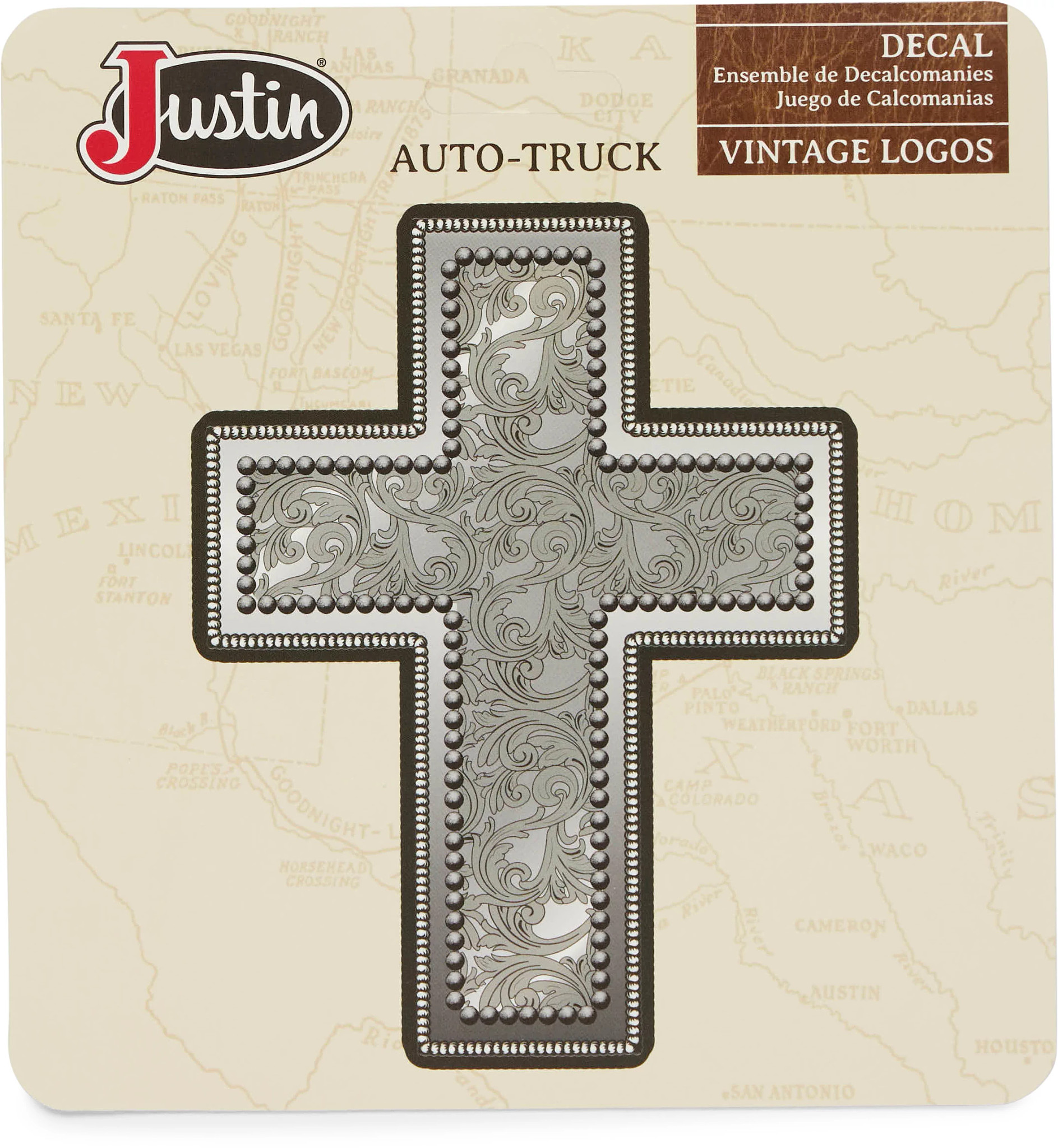 Justin Boots Women’s Apparel Tooled Cross Auto Decal | Silver (grey)