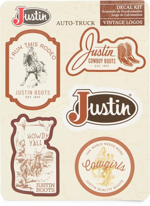 Add a touch of Western spirit to your ride with these Justin Boots vintage-style auto decals. Featuring bold, iconic designs like “I Run This Rodeo” and “The World Needs More Cowgirls,” this set celebrates the timeless heritage of the West. Durable and easy to apply, these high-quality decals are perfect for showcasing your cowboy or cowgirl pride on your car, truck, or any flat surface. Express your unique style and love for authentic Western culture wherever the road takes you.