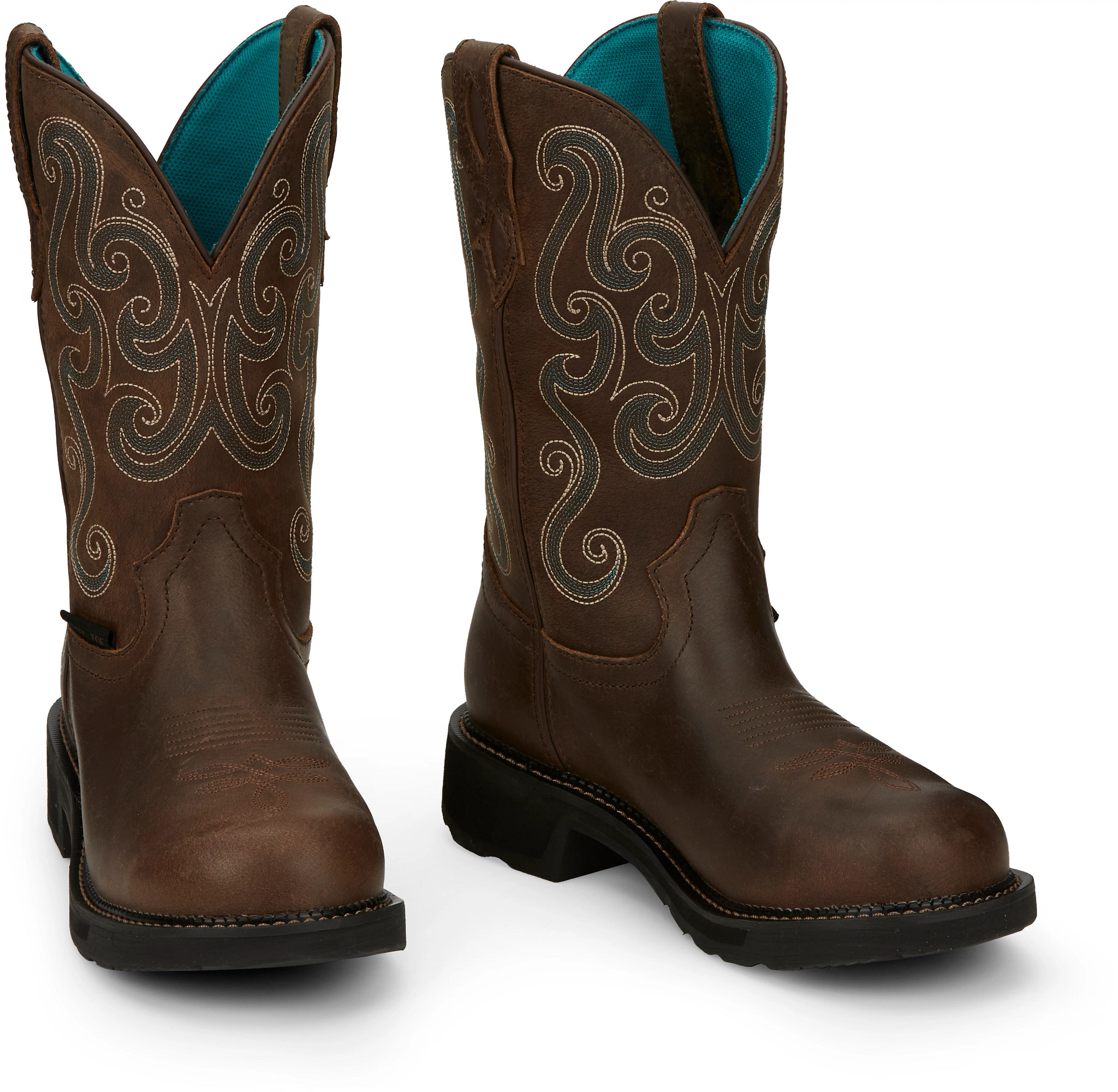 The Tasha 11″ Steel Toe Waterproof women’s Justin Gypsy™ work boot steps on the wild side.