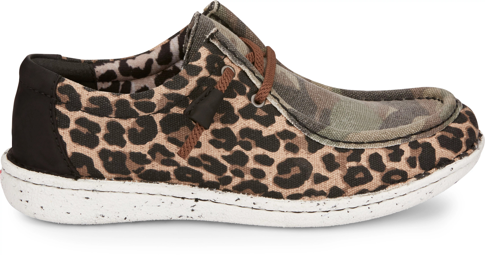 The women’s Hazer from the Justin Casuals collection features laid-back moc-toe styling with a cushioned inside.